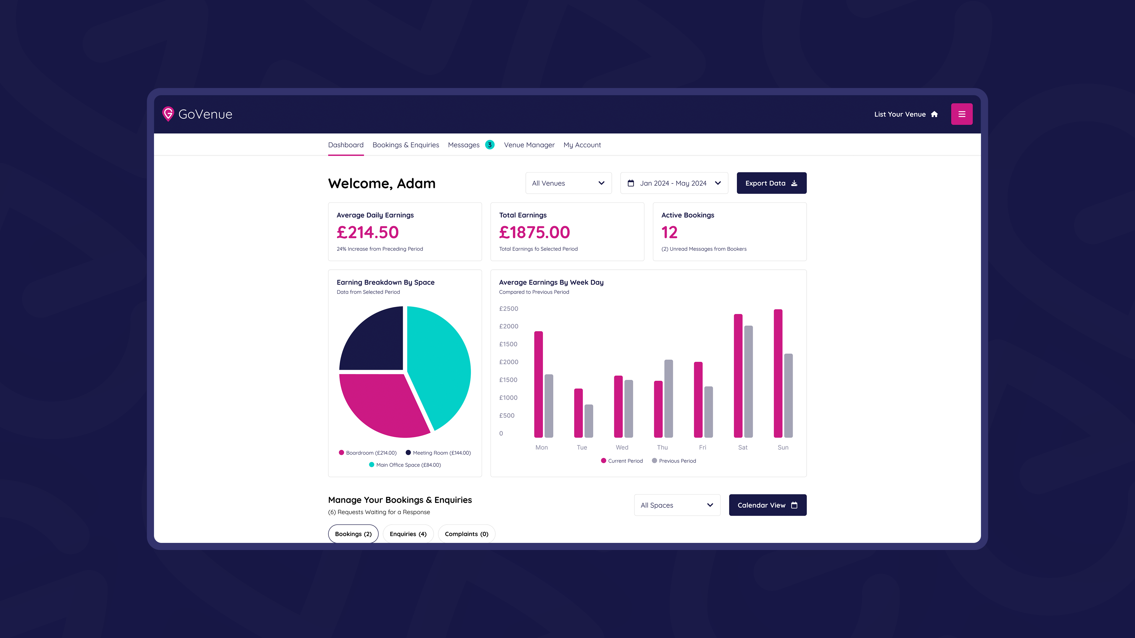 Using innovative technology, GoVenue equips venues of all sizes with advanced tools to manage availability, pricing, and bookings effortlessly. The platform also provides valuable insights to help venues grow their business, compete with larger operators, and maintain independence and flexibility.