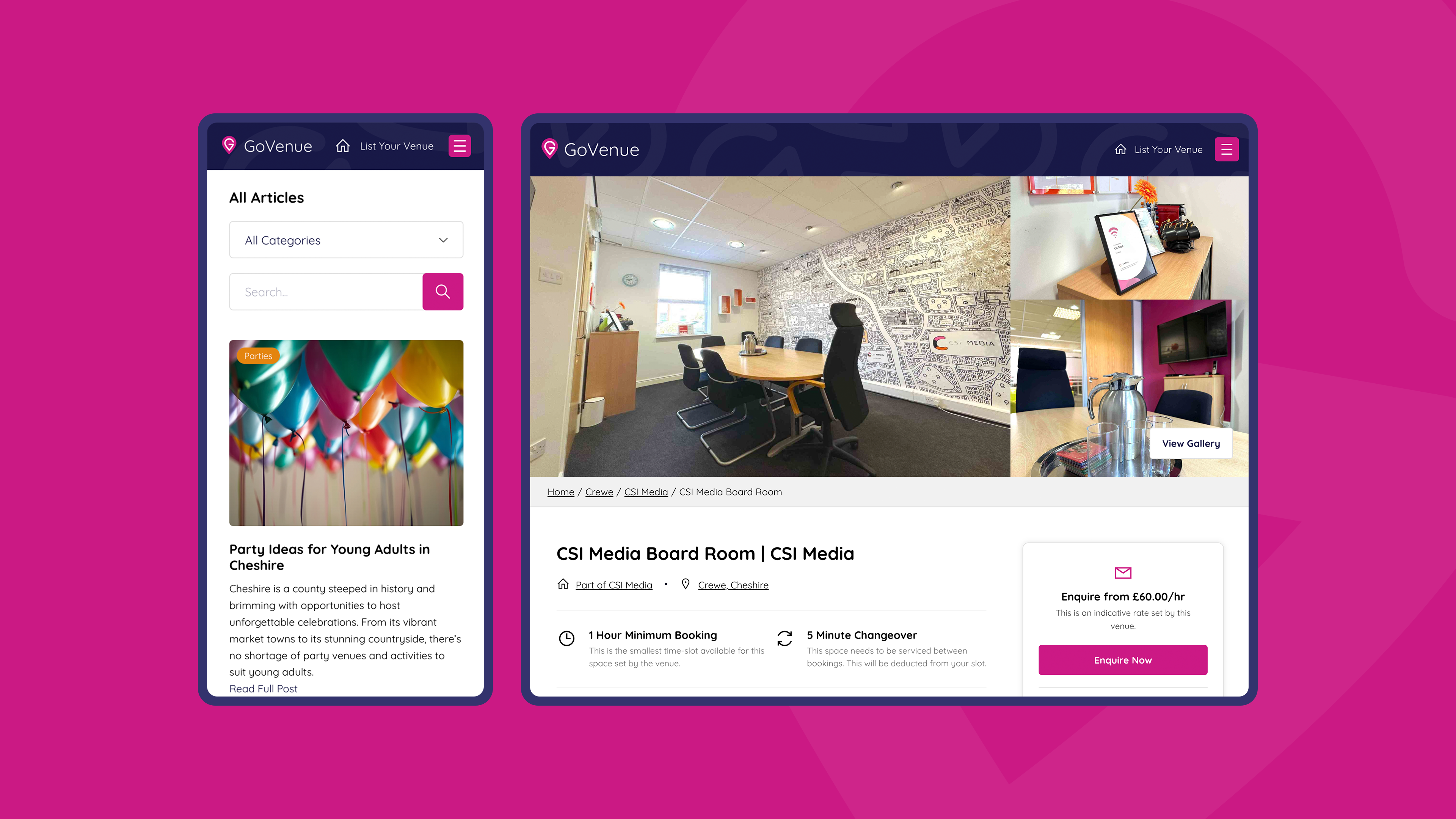 GoVenue is the UK's independent venue marketplace, helping venues showcase spaces, manage bookings with free market leading software, and maximise revenue while offering event organisers real-time availability without the hassle of emails or calls, all powered by our own Ecommerce and Booking Software.
