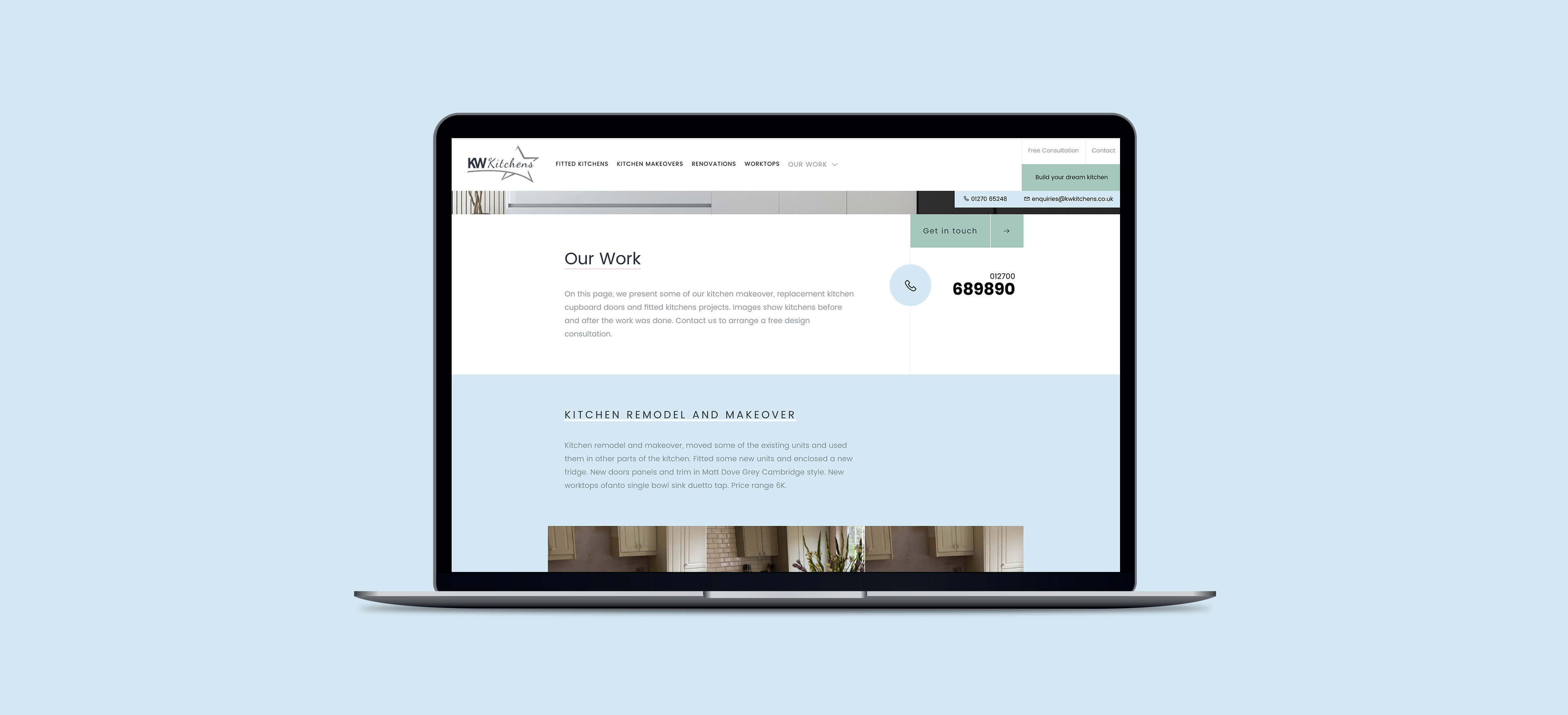 A key decision-influencer for customers is being able to see a company’s previous work - this is undeniably important for kitchen installations. The new website gives KW Kitchens the opportunity to effectively showcase their latest projects - a selection of beautiful kitchen makeovers - giving users the confidence to enquire.